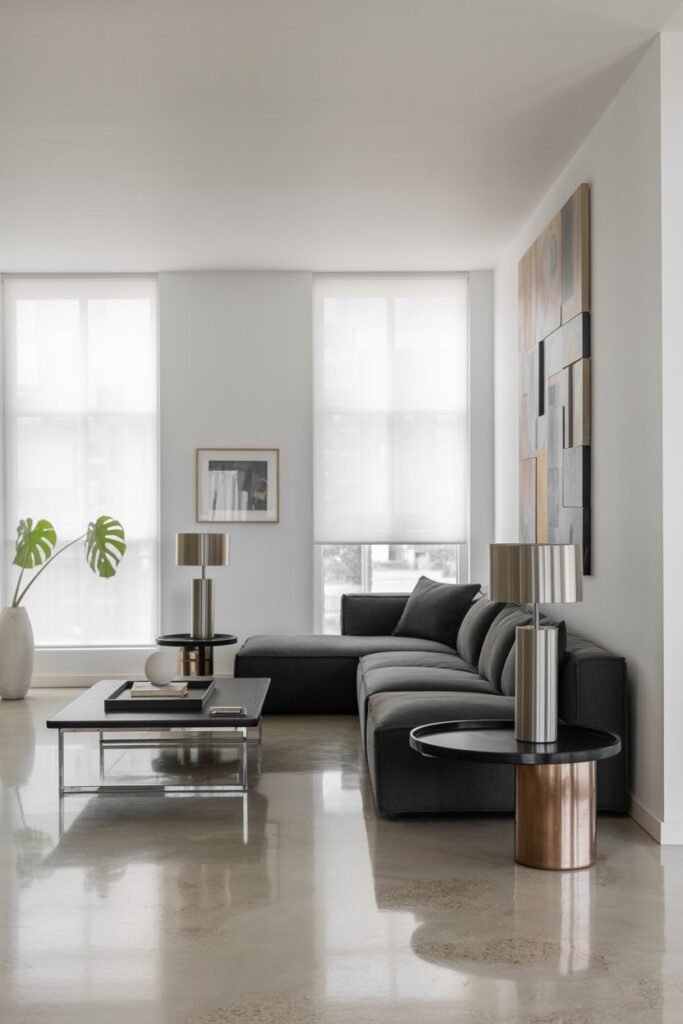 - Add metallic elements through lighting fixtures, tables, or wall art.