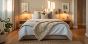 - Finish with cozy accents like throw blankets, woven baskets, and candles.