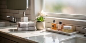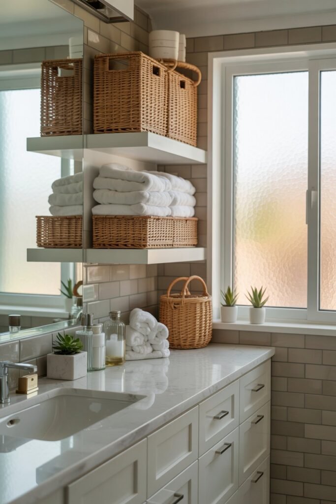 Pro Tip: Mix functional items with decorative accents. For example, I keep a rolled stack of towels next to a small candle and a succulent. It looks curated without being fussy, and it’s practical.