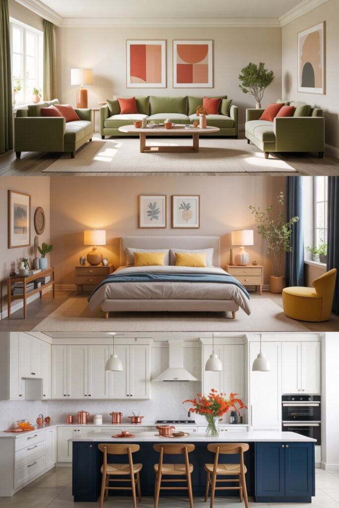 Whether you’re updating a living room, bedroom, kitchen, or office, the key is intentionality. Start with a calm, dominant color, add depth with a secondary shade, and finish with small, deliberate accents.