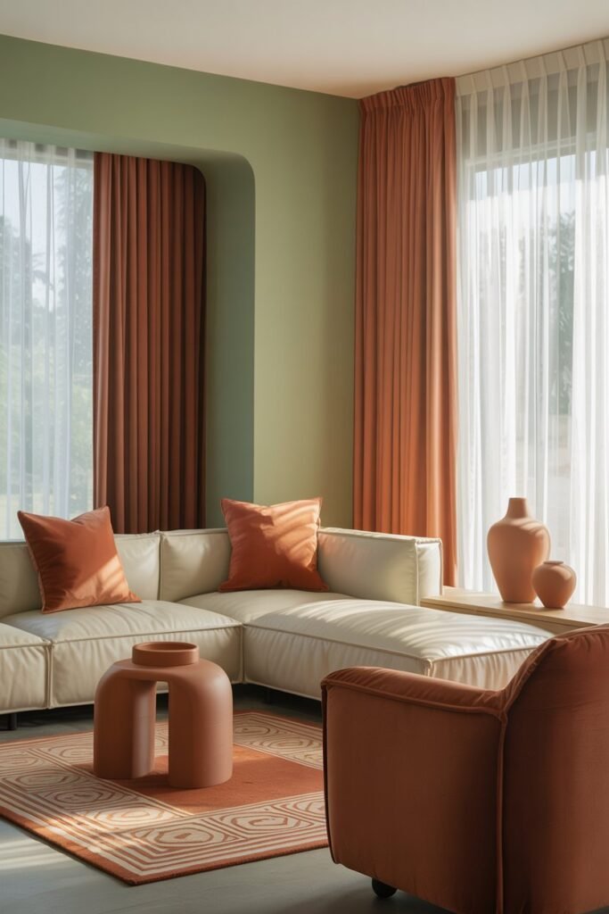 • Introduce patterns in this color — such as a geometric rug, striped cushions, or textured curtains — to add dimension without overwhelming the space.