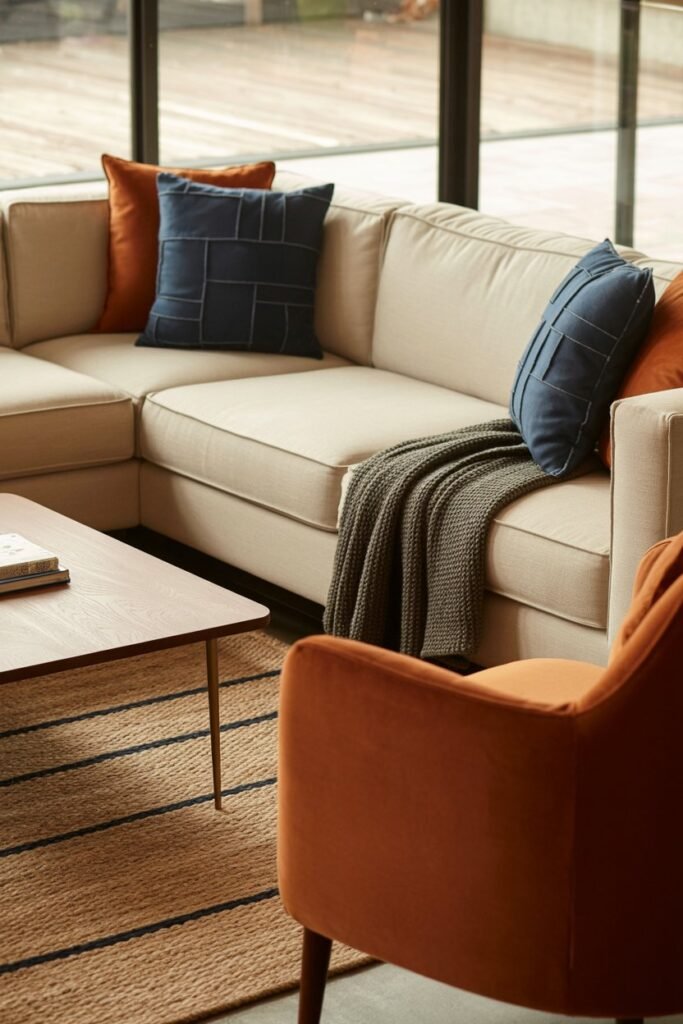 Extra Insight: The secondary color is where you can play with materials and textures — velvet, linen, leather, or even natural fibers like jute rugs.