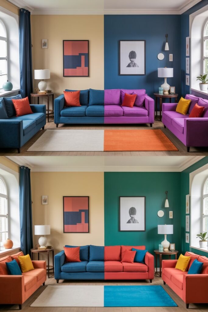 Example: A gray-and-charcoal living room (60%/30%) became more inviting with mustard yellow cushions, a matching throw, and a small decorative tray (10%). Guests immediately noticed how “lively and intentional” the space felt.