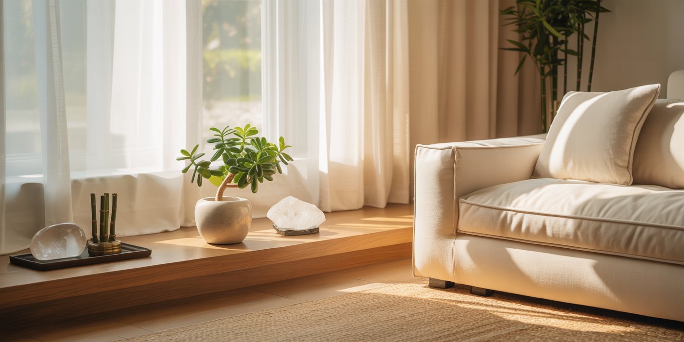 Each item has an ideal spot. For example, crystals are best near windows for light reflection, water fountains in the entryway for prosperity, and plants in living spaces for life energy.