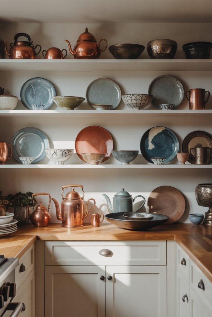 I love displaying pieces that tell a story. Vintage jars, old mixing bowls, or inherited teapots instantly add character and personality to the space.