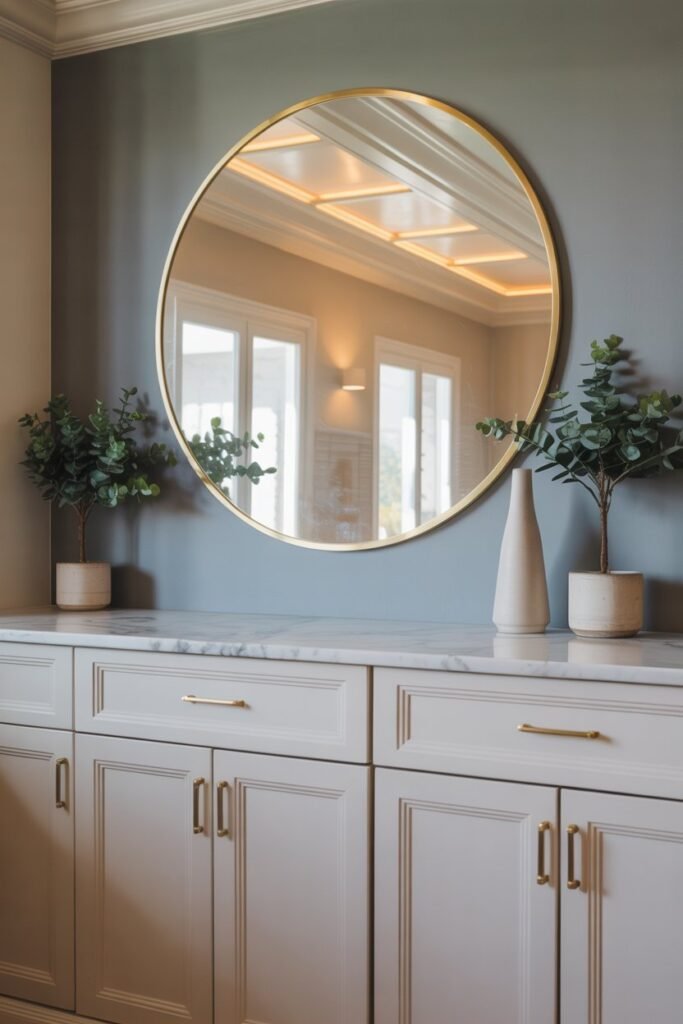 I love placing a statement artwork piece or small mirror above my cabinets for a high-impact look.