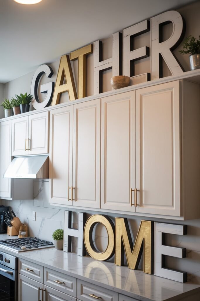 Decorating above the cabinets is a mix of art and strategy. I’ve experimented with everything from plants and pottery to seasonal accents and meaningful décor pieces.