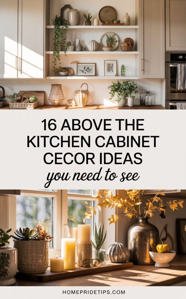 With these 16 ideas, you can create a stylish, functional, and visually appealing area above your cabinets — all while expressing your personality and making the kitchen feel like the heart of your home.