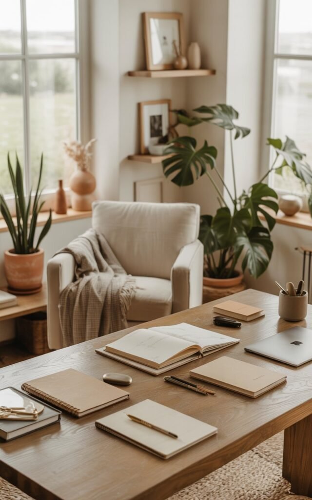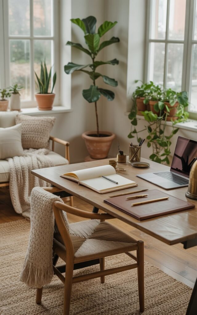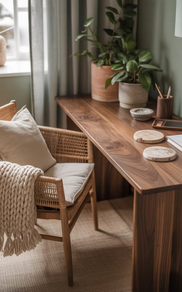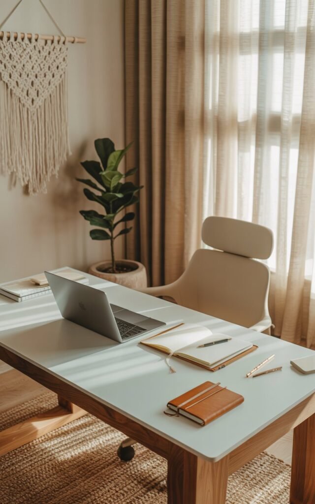 My office needed calm without distraction. I started with neutral colors and natural textures.