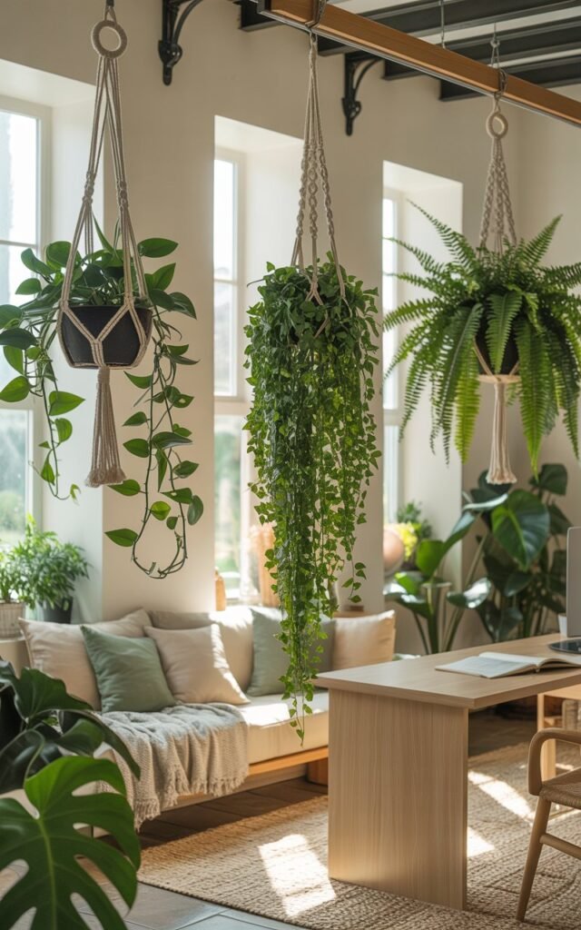 Plants changed the feel of both spaces almost instantly. I made a few hanging holders and placed them near windows where light moves throughout the day.