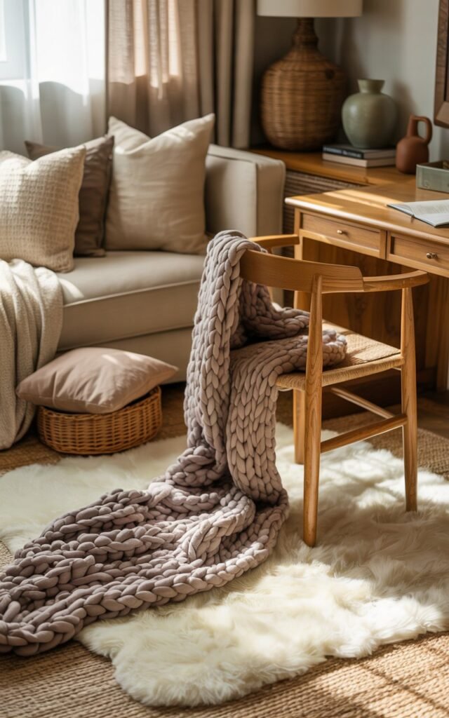 In the office, a textured rug under my chair softened the floor and made long work sessions easier. These additions didn’t overwhelm the rooms. They completed them.