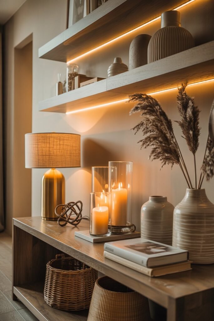 Lighting is one of the most underrated parts of console table styling. The right lighting doesn’t just brighten a corner—it adds warmth, depth, and atmosphere.