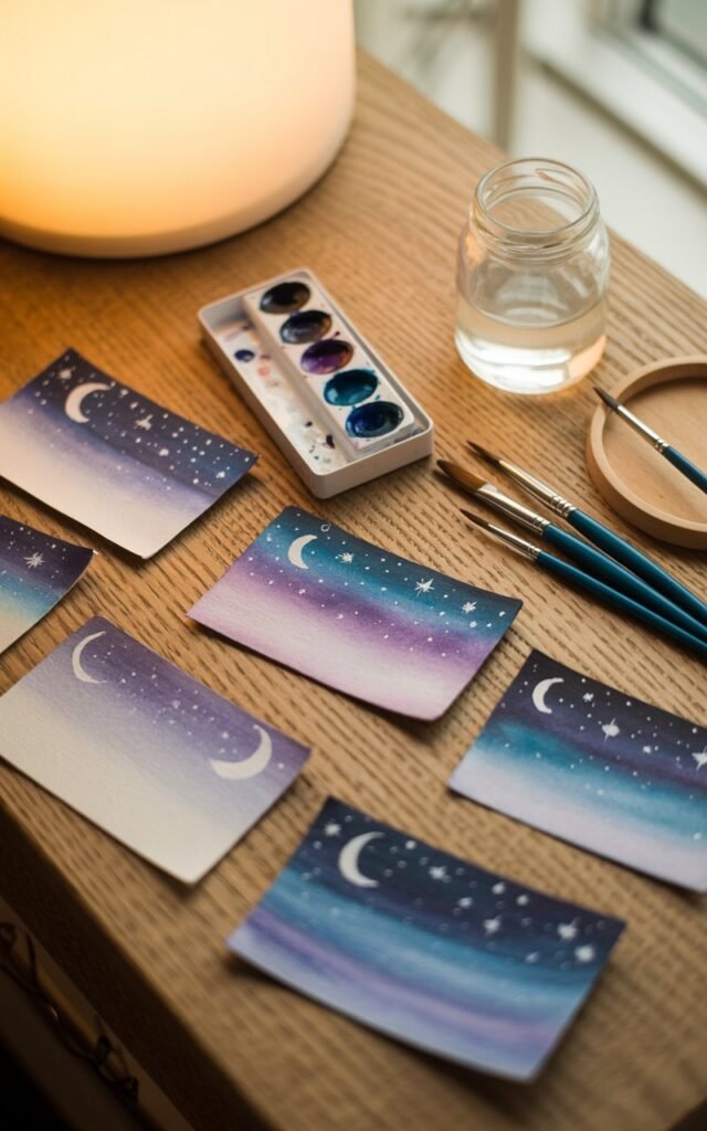 Large blank pages can feel intimidating, especially if you’re new. Small paintings remove that pressure entirely. You’re not committing to hours of work or expensive supplies. You’re simply exploring.