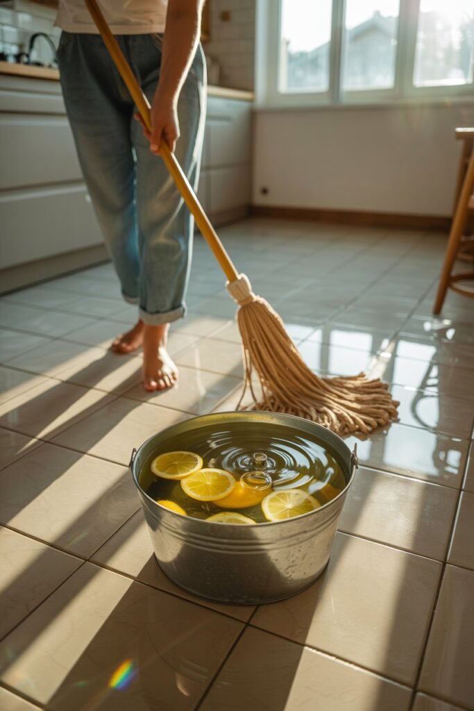 That’s when I discovered the mop bucket trick — a simple technique that turns an ordinary mopping session into a natural deodorizing ritual.